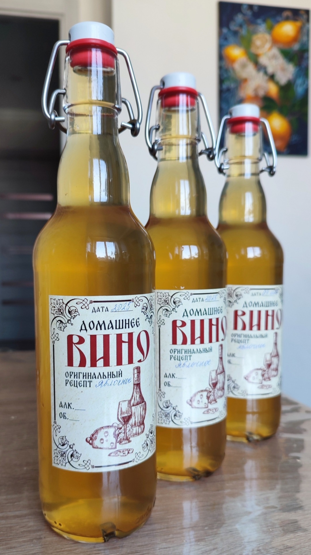 Вино из яблок (сорт не знаю, сладкие, красные), Краснодар, 2025. Напитку 56 дней, четырежды декантировали, два последних раза с оклейкой желатином, после окончания брожения хранилось при +5° в холодильнике.